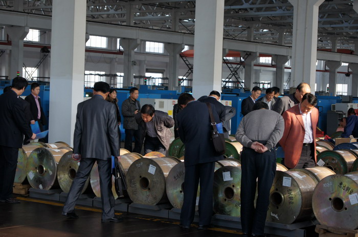 11月10日,安徽省電線電纜商會參觀團來到江潤銅業(yè)。在公司營銷部經(jīng)理陪同下,商會理事們參觀了銅連鑄連軋車間、復(fù)合銅線車間、銅絞線車間,深入了解到了高品質(zhì)的銅加工工藝。此次安徽省電線電纜商會赴電纜城考察,是為發(fā)展本地線纜事業(yè)引進先進技術(shù)。