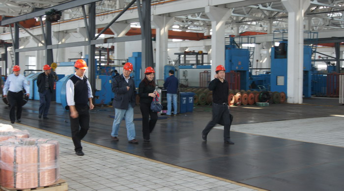 10月22日,上海期貨交易所丁文輝、宜興市人民政府周市長等一行10人訪問江潤銅業(yè),公司總經(jīng)理駱偉棟熱情接待。 駱總對上海期交所、市領(lǐng)導(dǎo)的再次到來表示熱烈歡迎,詳細介紹了江潤銅業(yè)本年度生產(chǎn)經(jīng)營的基本狀況,對未來發(fā)展的展望。期交所丁總監(jiān)對江潤銅業(yè)在多年合作中提供的優(yōu)質(zhì)服務(wù)表示感謝。 隨后,來訪客人深入生產(chǎn)車間,參觀SCR-7000銅連鑄連軋車間、復(fù)合銅線車間、銅絞線車間。江潤銅業(yè)先進的裝備,整潔的車間,優(yōu)美的廠區(qū)環(huán)境給參觀團一行留下了深刻印象,一致認為符合上海期貨所注冊試驗工廠的標準。